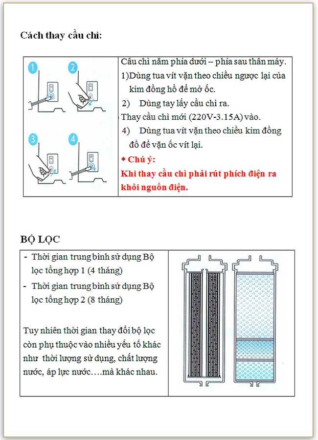 1)   Không nên dùng nước không đủ tiêu chuẩn cung cấp cho máy.