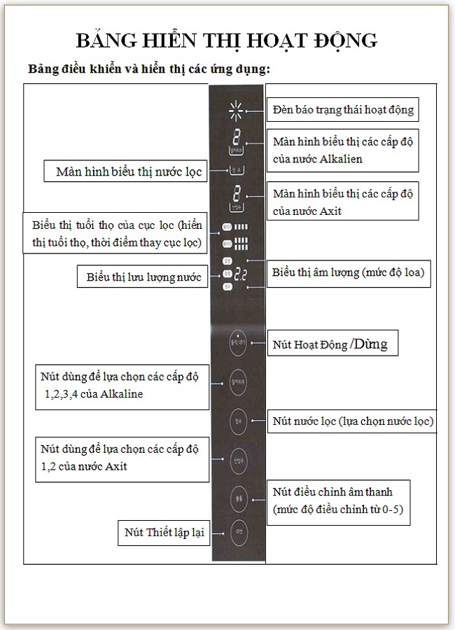 -   Nếu muốn sử dụng nước axít thì chọn chế độ nước axit, chọn cấp độ 1,2 và sử dụng.